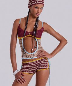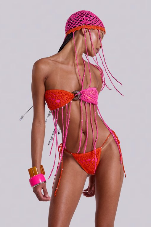 Jaded London Women’s Swim Aurea Asymmetric Crochet Mini Dress | Pink & Orange