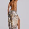 Jaded London Women’s Haka Faux Feather Fur Backless Top | Grey