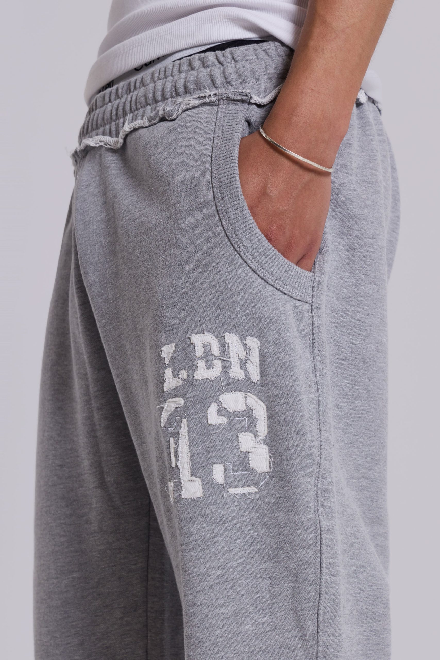 Grey marl low-rise slouchy bootcut joggers in loopback sweat with branded detail.