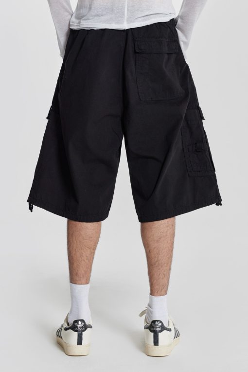 Discover the unparalleled comfort and style of the Black Parachute Cargo Baggy Shorts. These shorts feature an oversized fit and six-pocket styling, accompanied by an elasticated waistband and adjustable cotton drawcord for added flexibility.