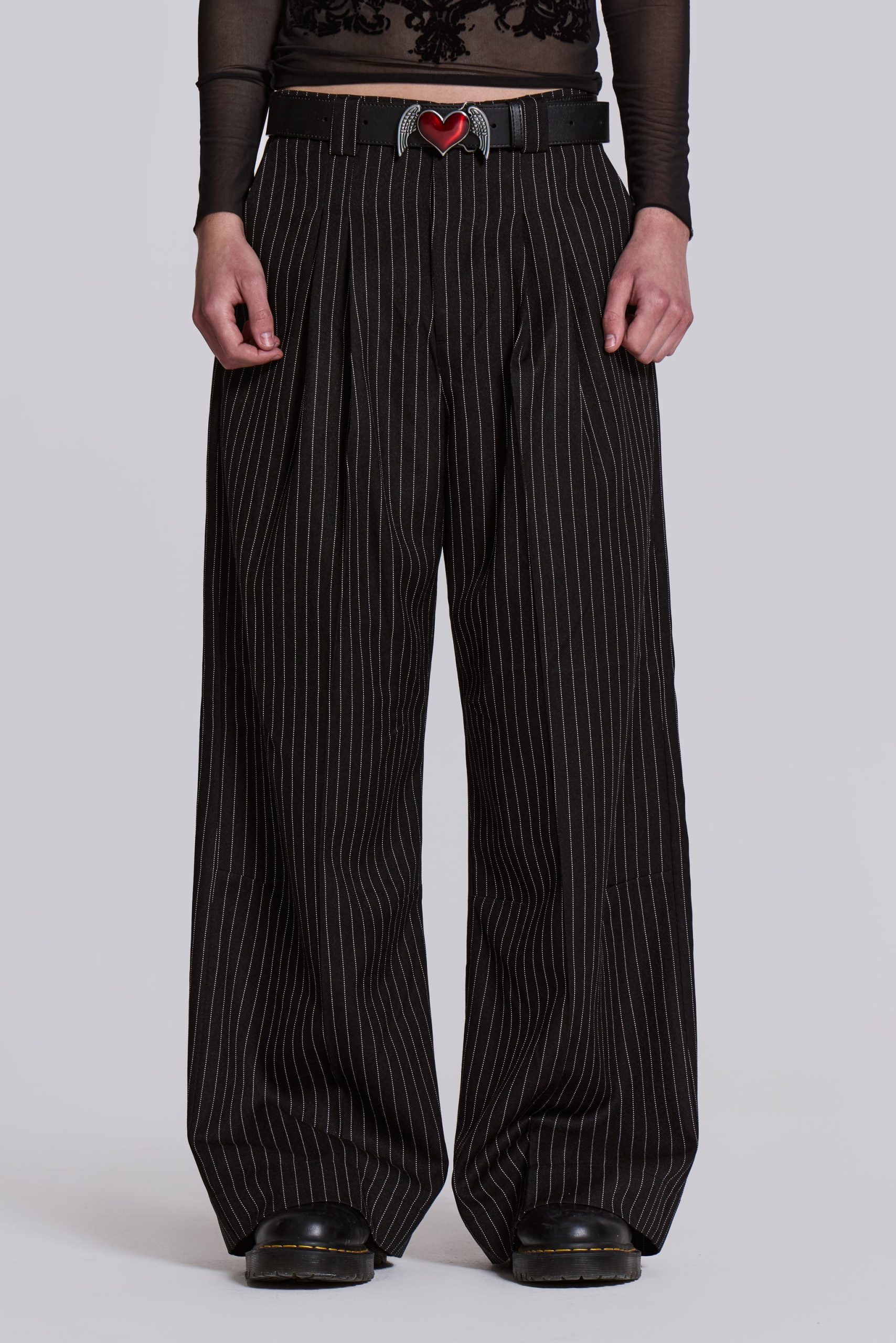 Jaded London Men’s Black Pinstripe Goliath Suit Pants | Black