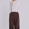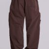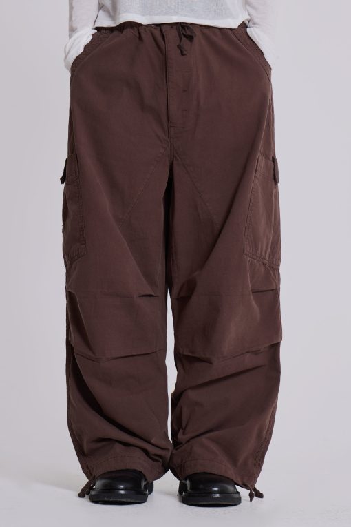 DescriptionDesigned with an oversized fit and a combination of metal eyelets, zip fly and adjustable cotton drawcord, our Brown Parachute Cargo Pants deliver refined luxury and ultimate comfort. Details such as a pleated knee and inside leg darts ensure a perfect fit, while a six-pocket styling and a unique airpod pocket provide functional convenience. Elevate any look with this timeless and classic silhouette.