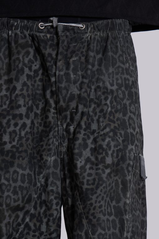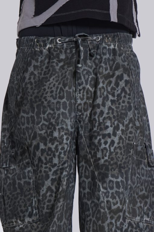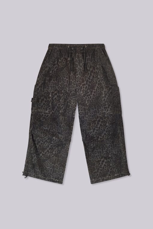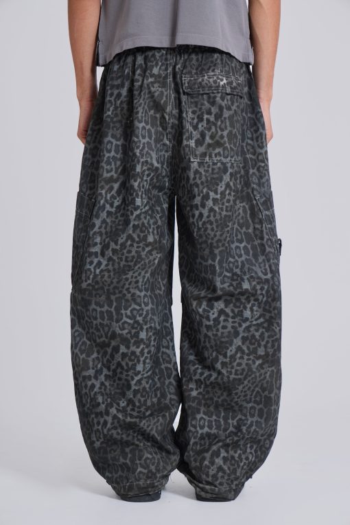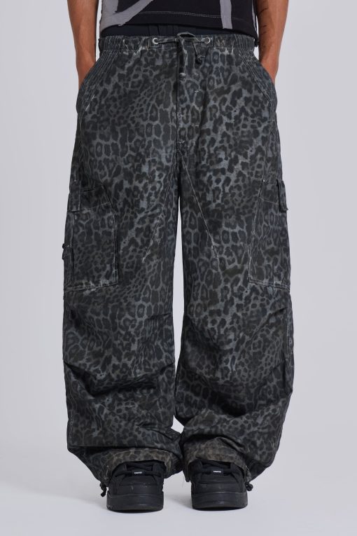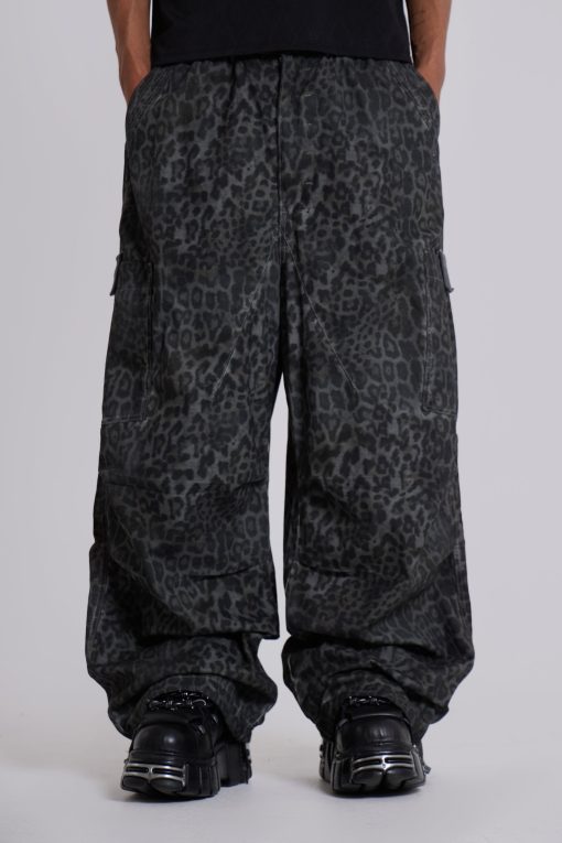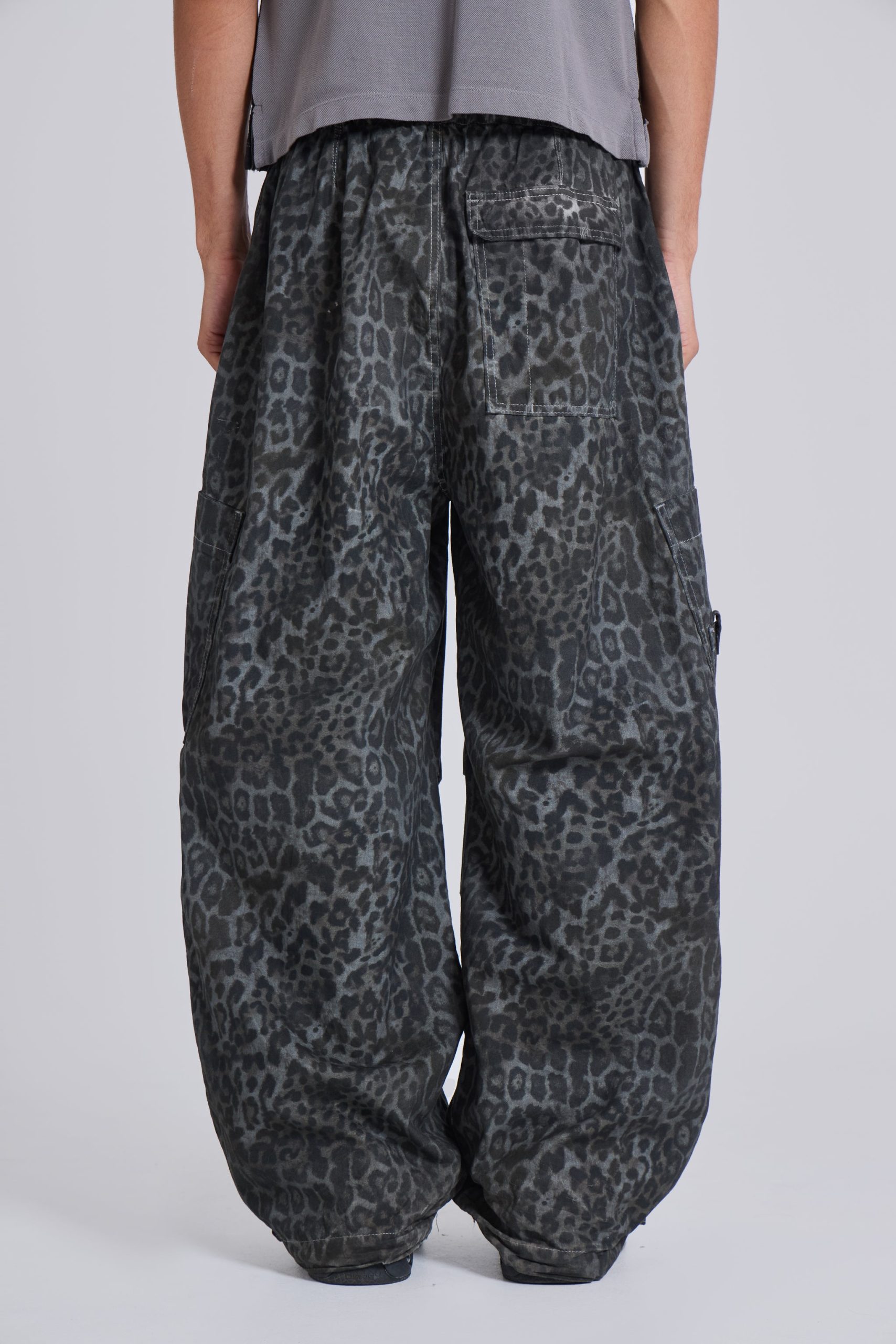 Jaded London Men’s Charcoal Leopard Parachute Pants | Leopard Print