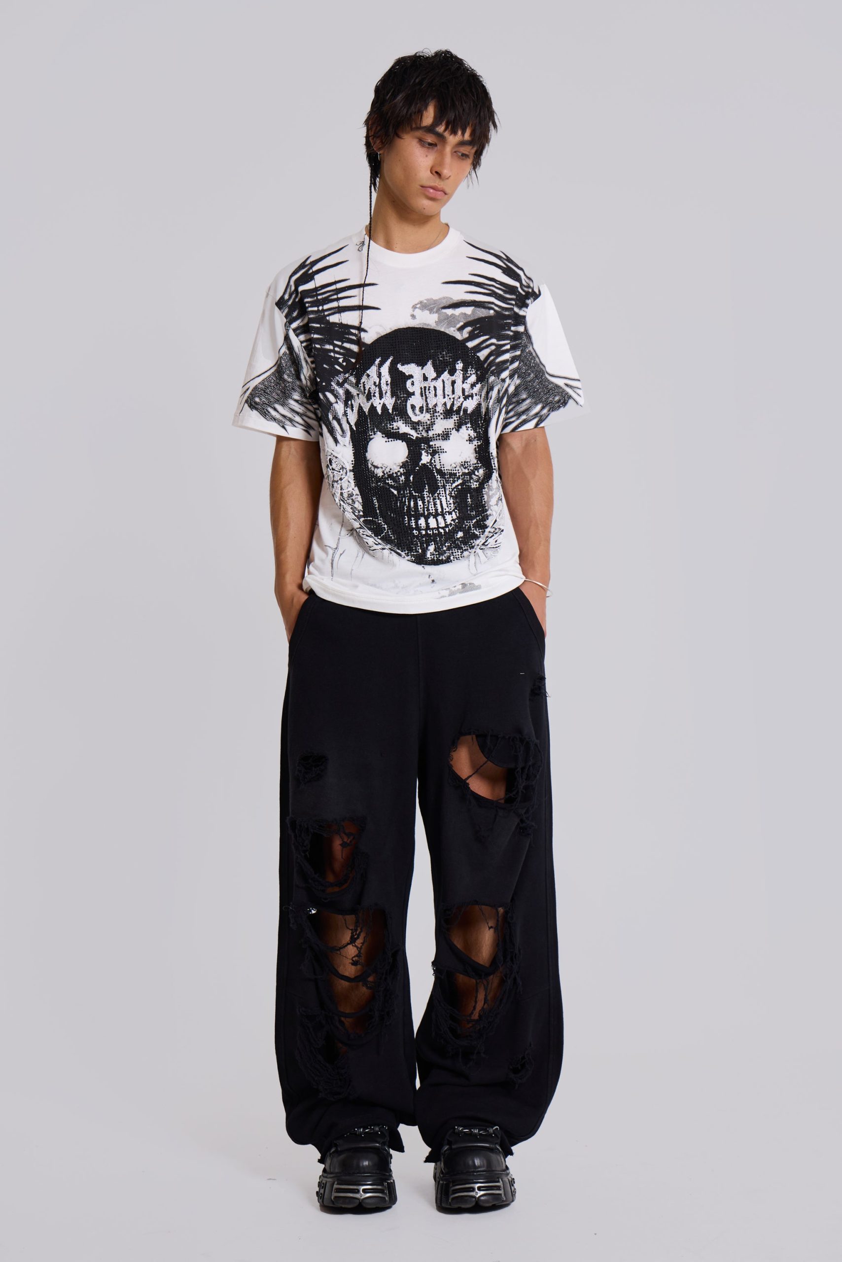 DescriptionThe Distressed Black Monster Joggers In Loopback are crafted from a loopback heavy weight sweat fabric, with extreme distressed rips, vintage wash and elasticated draw cord waistband and tailored in an oversized Colossus fit.