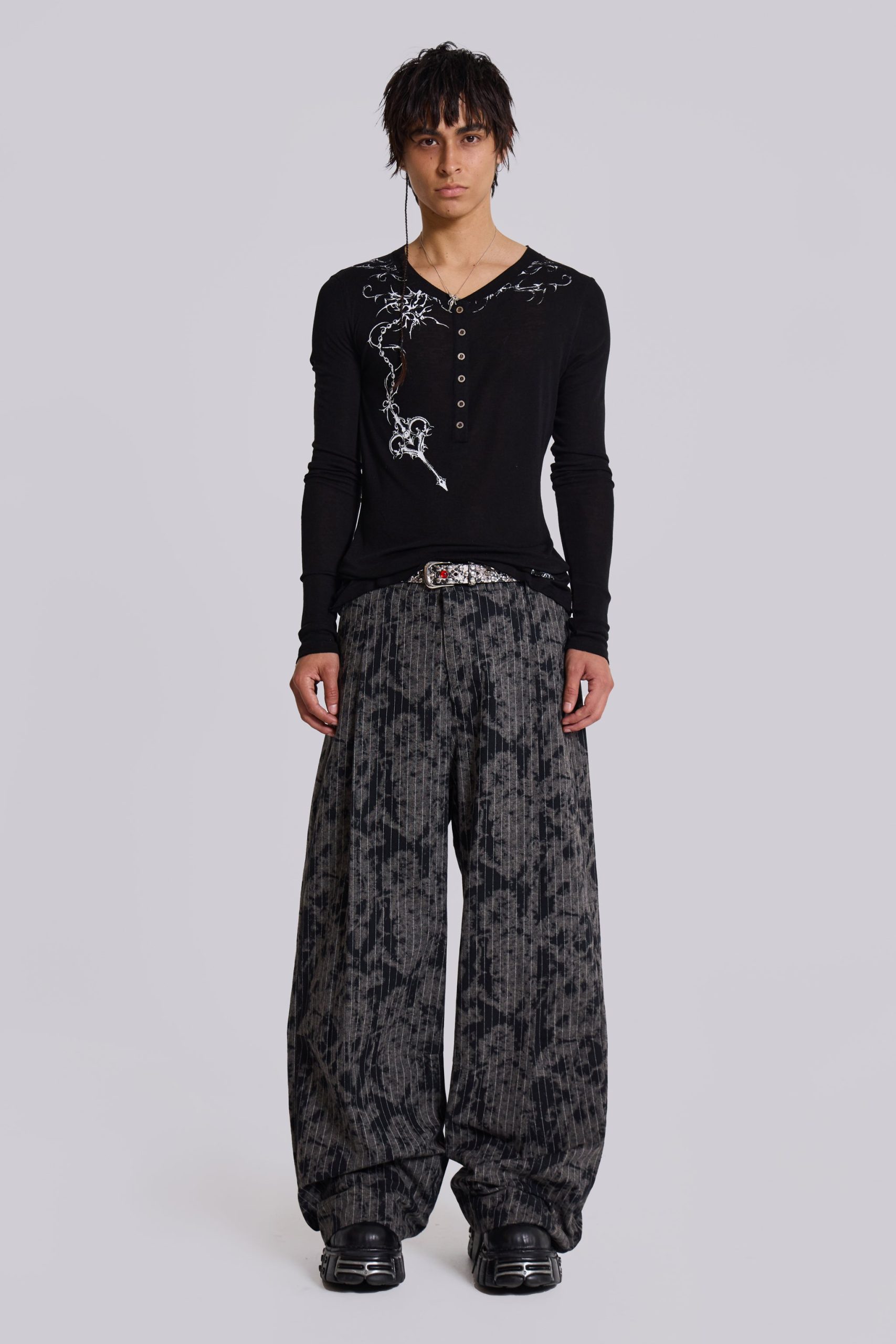 Jaded London Men’s Dyed Pinstripe Goliath Suit Pants | Black