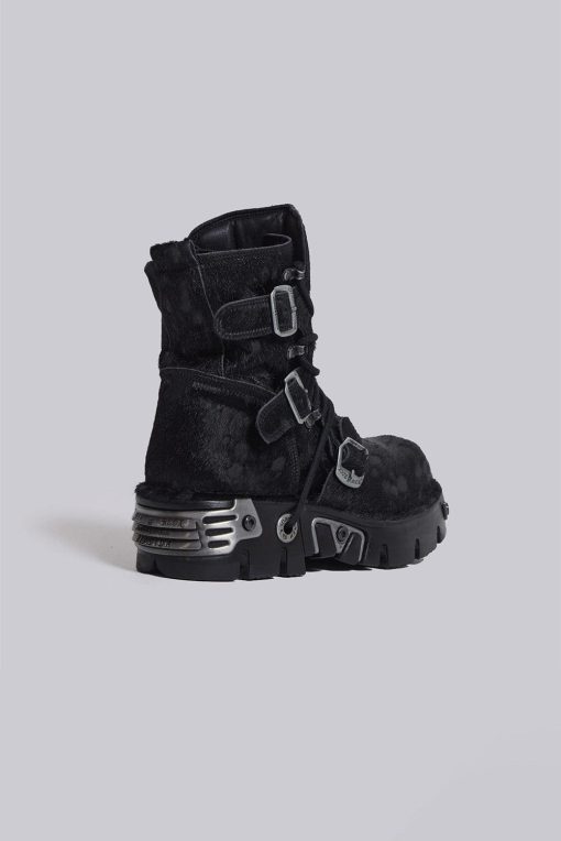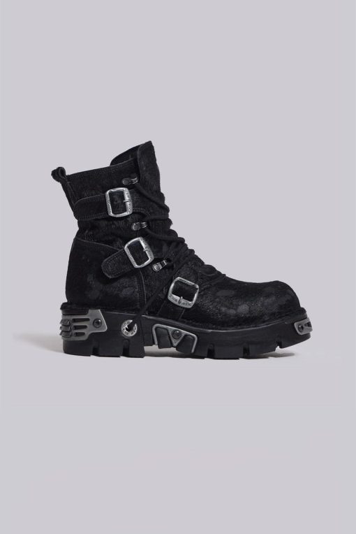 The New Rock for Jaded Mustang Reactor Boots have been crafted from distressed fur cowhide. The boots feature branded metal buckles and a cotton lace-up closure.