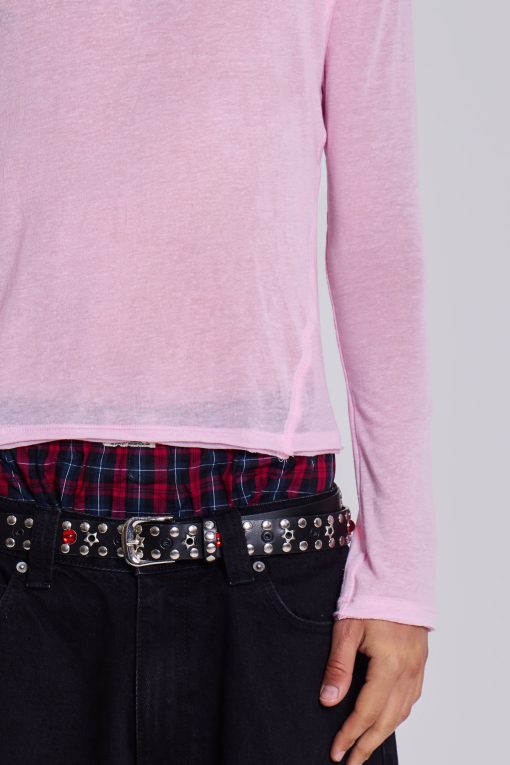 Crafted from a lightweight sheer fabric, the Pink Mist Long Sleeve provides the perfect layering piece. This top has a slightly cropped body with a twisted side seam detail.