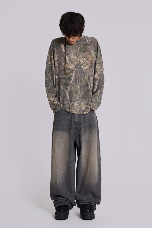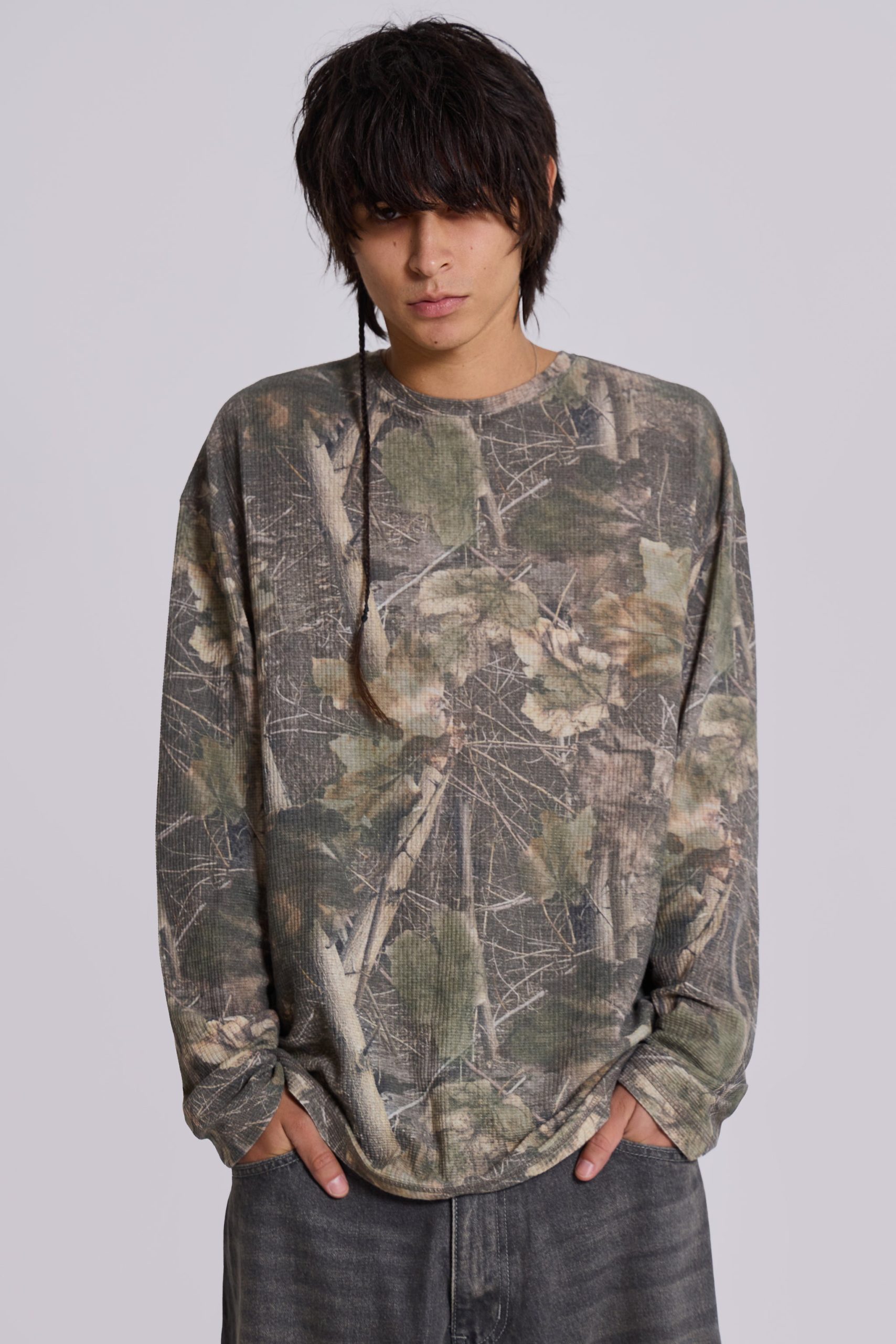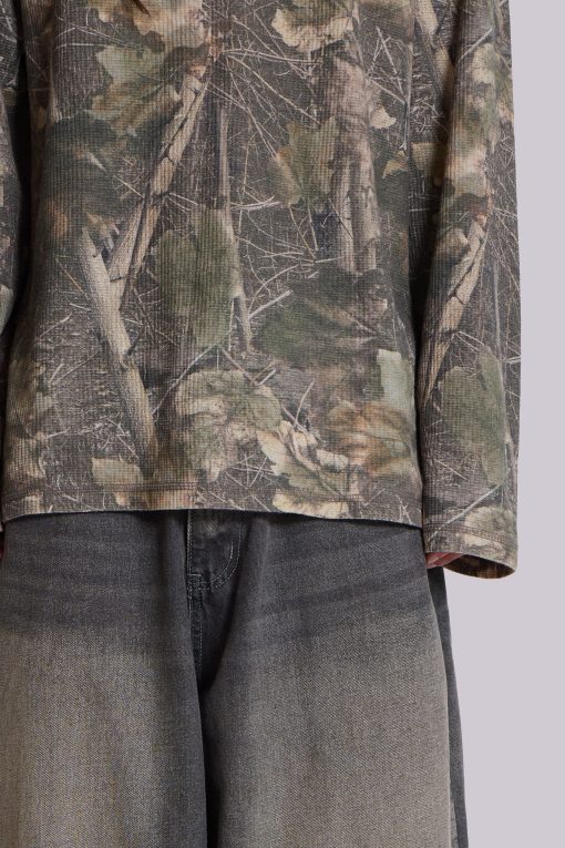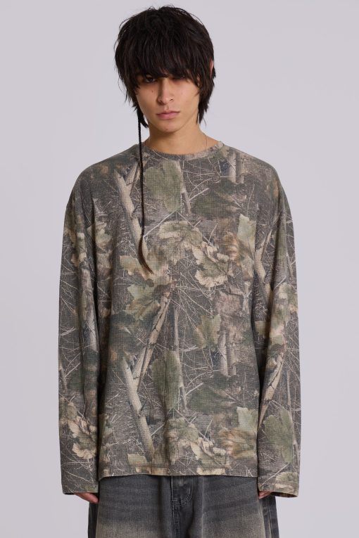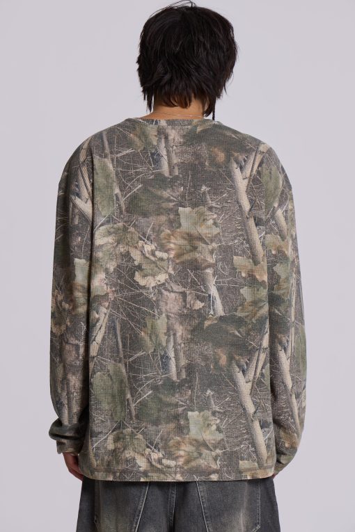 Jaded London Men’s Woodland Camo Waffle Long Sleeve Top | Camo