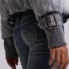 - Rib cuffs with denim belt detail