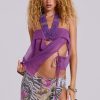 Purple chiffon bandeau top with cut out and tie detail