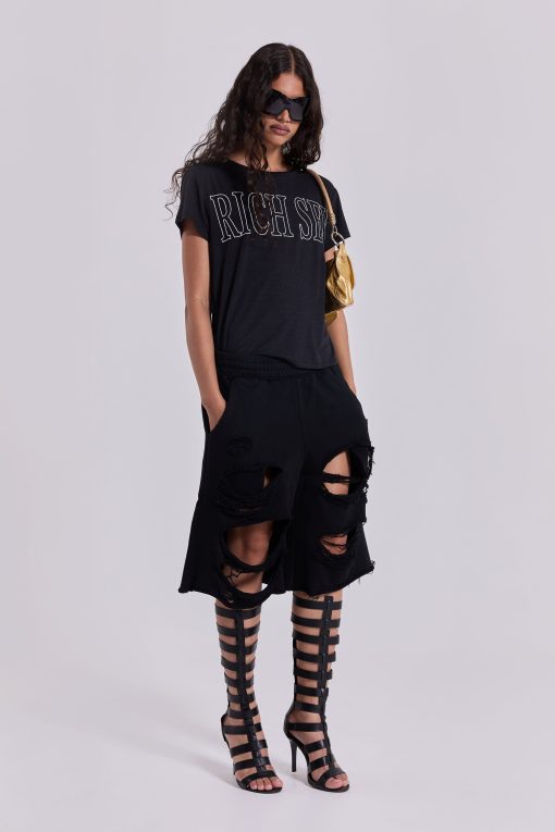 Jaded London Women’s Black Distressed Monster Shorts | Black