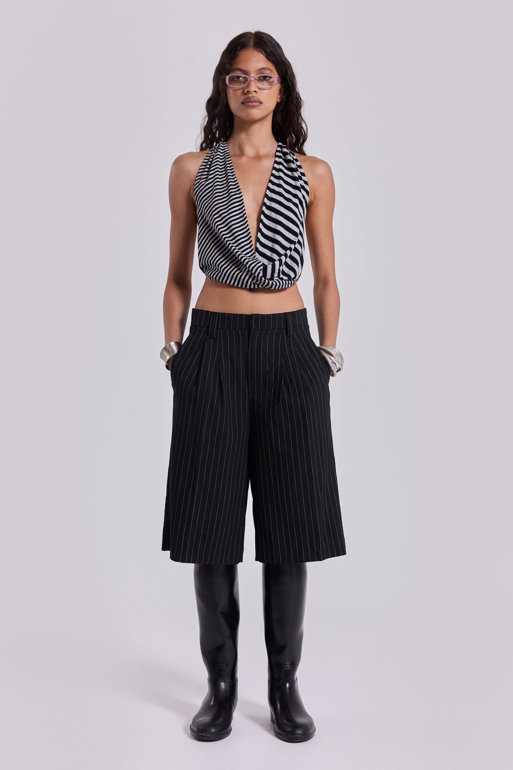 Jaded London Women’s Black Pinstripe Goliath Shorts
