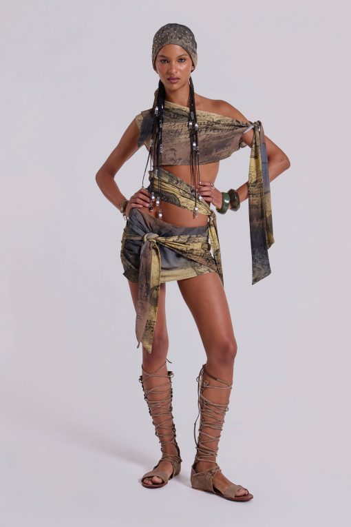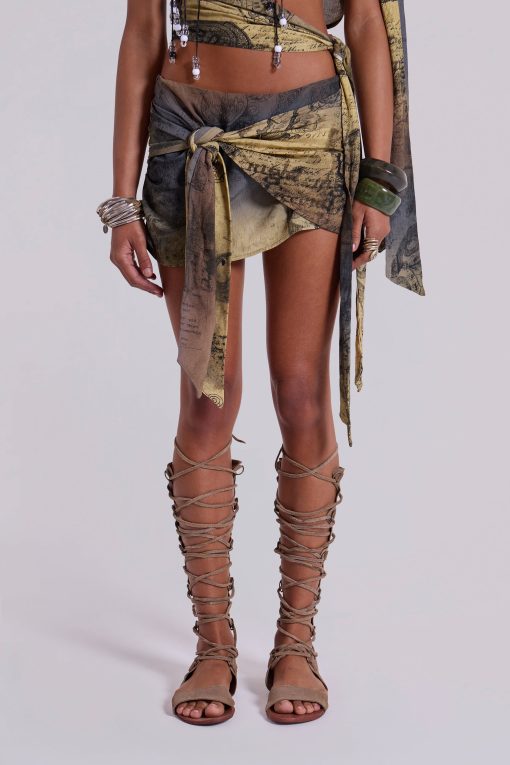 Wrap Knotted Scarf Print Skirt
