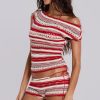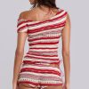 Jaded London Women’s Cata Red Stripe Asymmetric Ruffle Knit Top | Multi