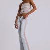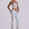 DescriptionHook and eye detail bootcut jeans with seam detailing