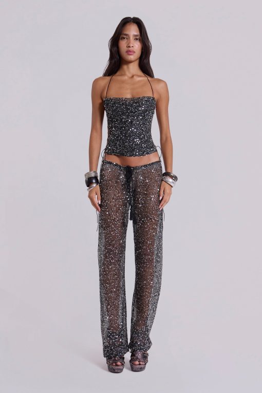 Jaded London Women’s Deva Sequin Knit Corset Top In Midnight | Black