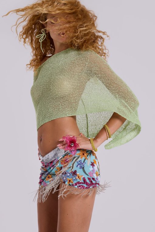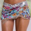 Sequin Embellished Wrap Mini Skirt with Sequin Waistband