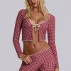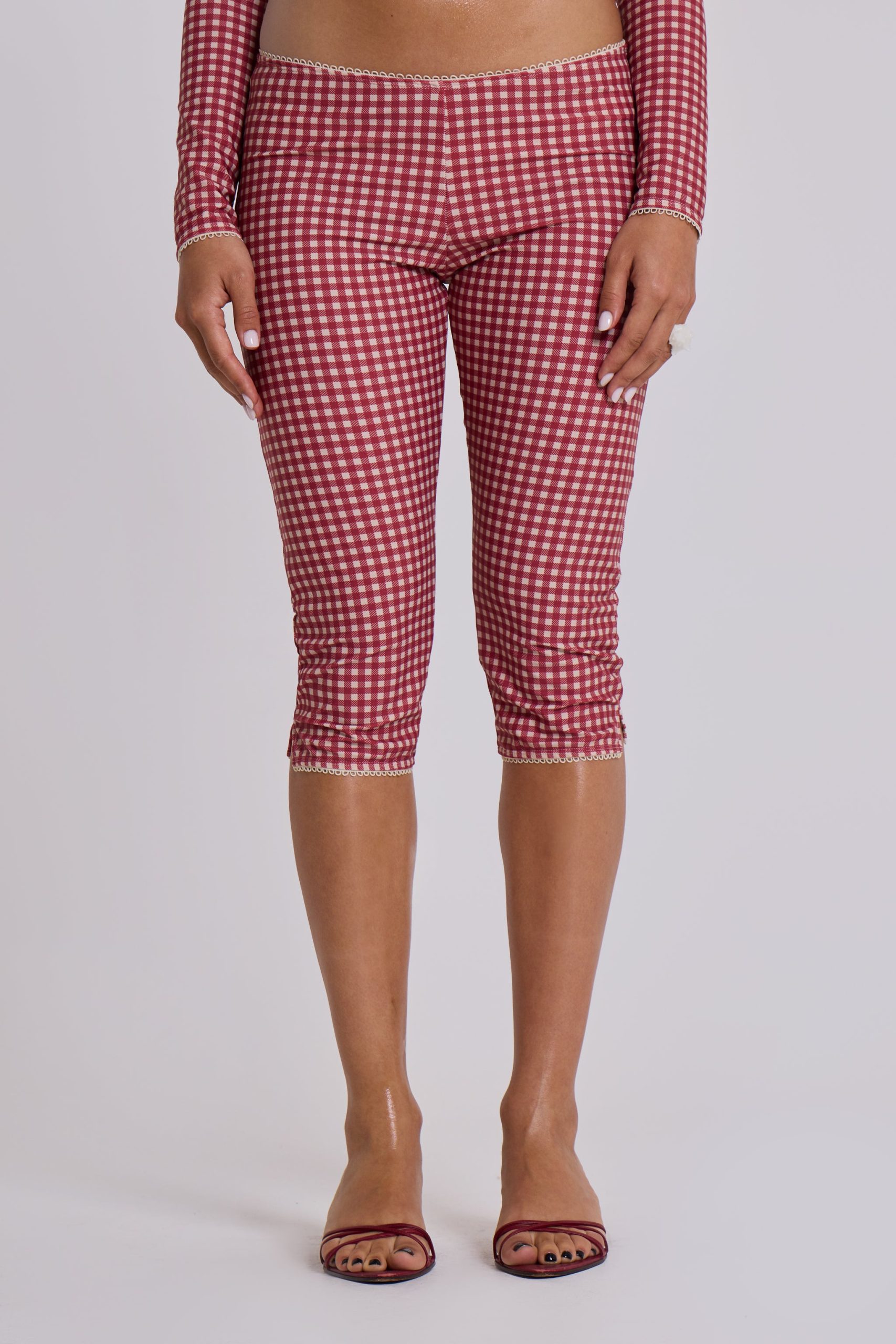 Jaded London Women’s Freda Gingham Swim Capri Trousers | Red