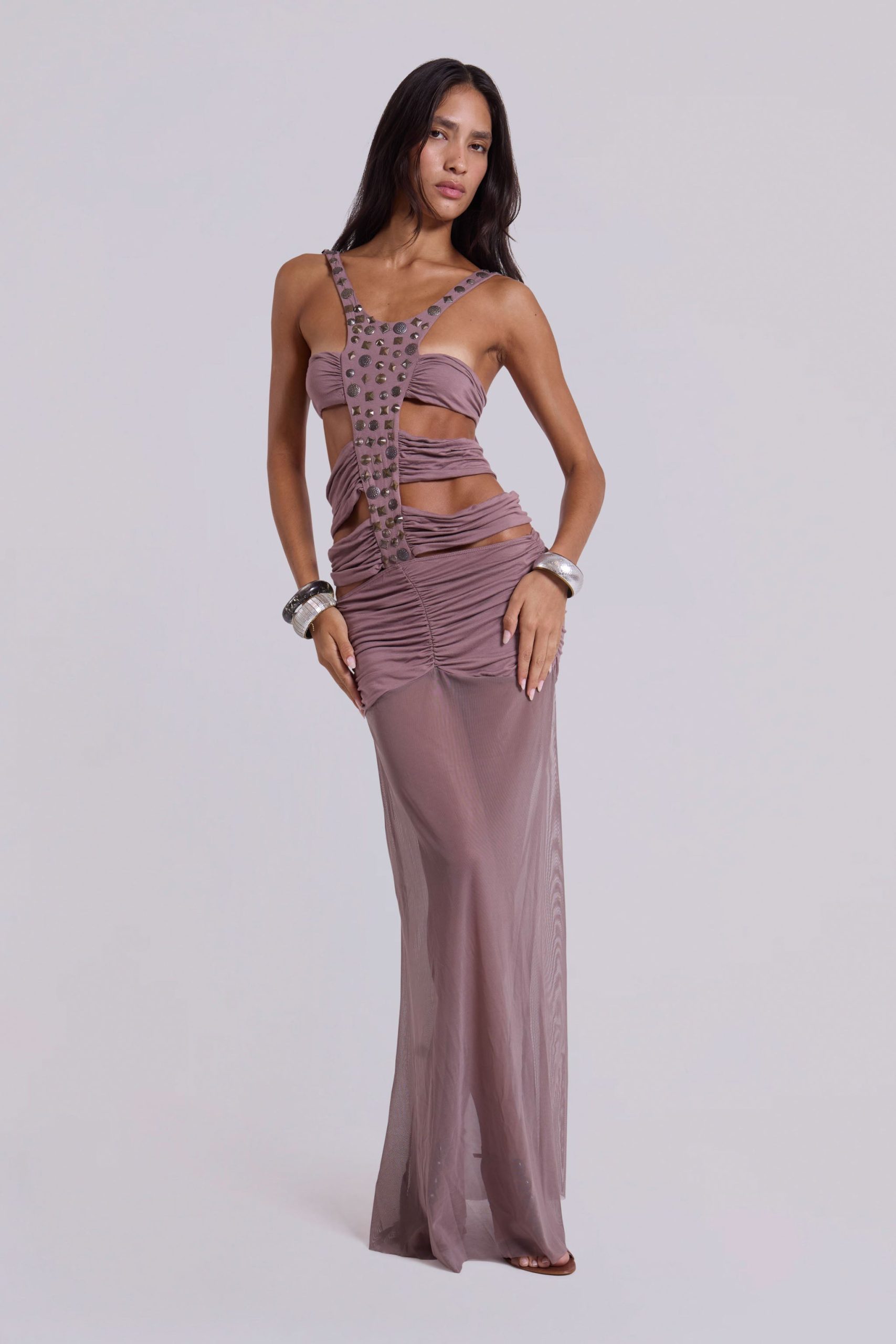 Jaded London Women’s Hadassa Cut-out Hand-beaded Maxi Dress | Mauve