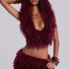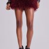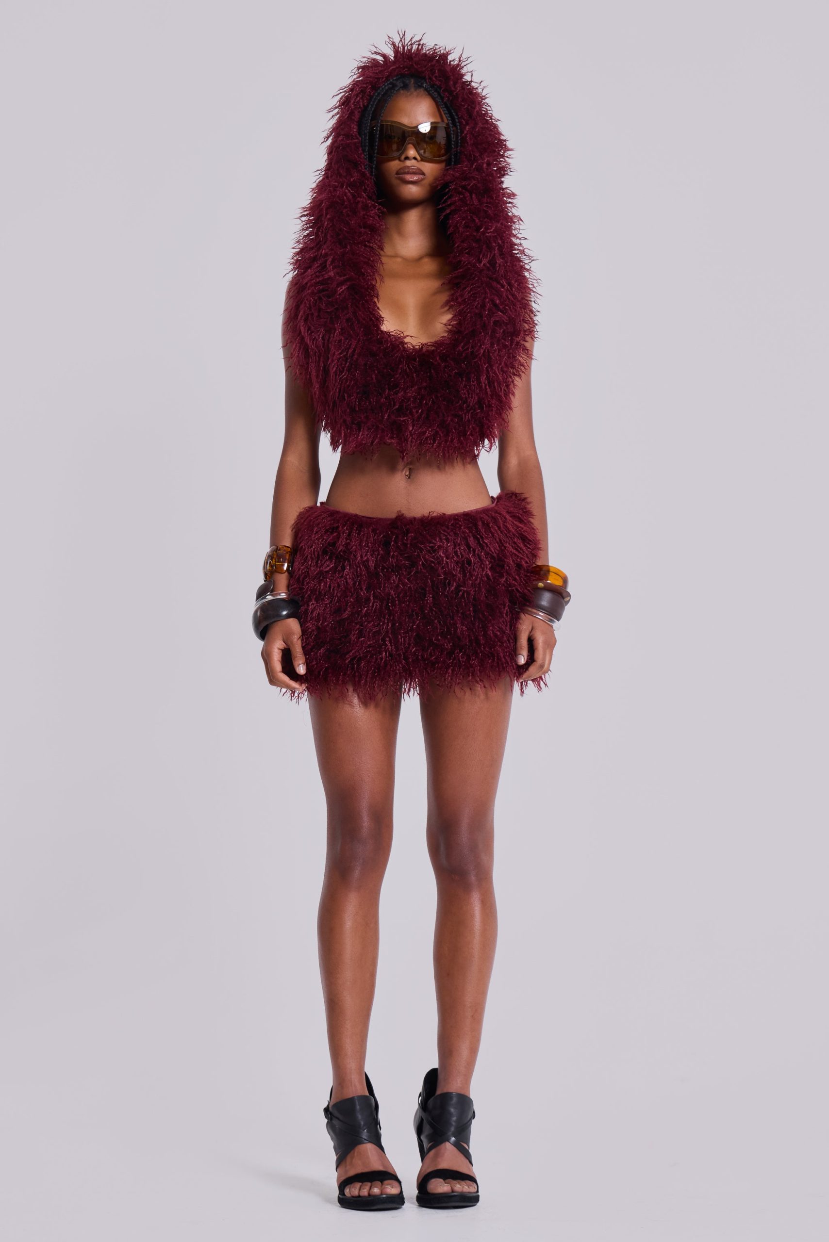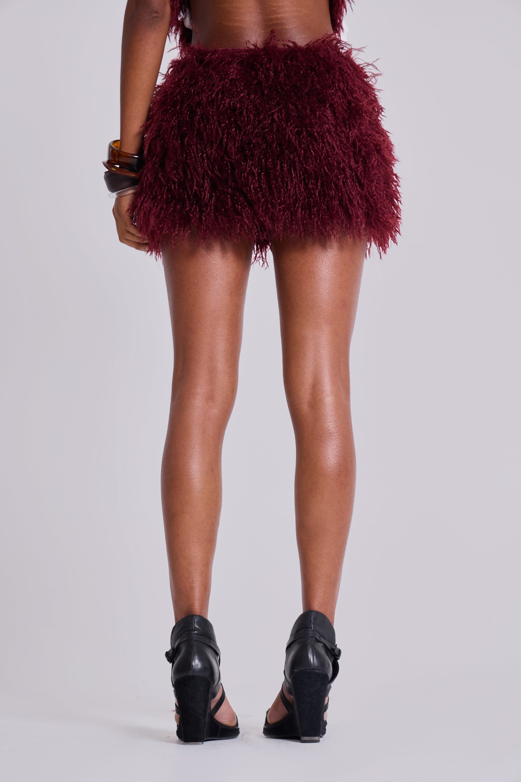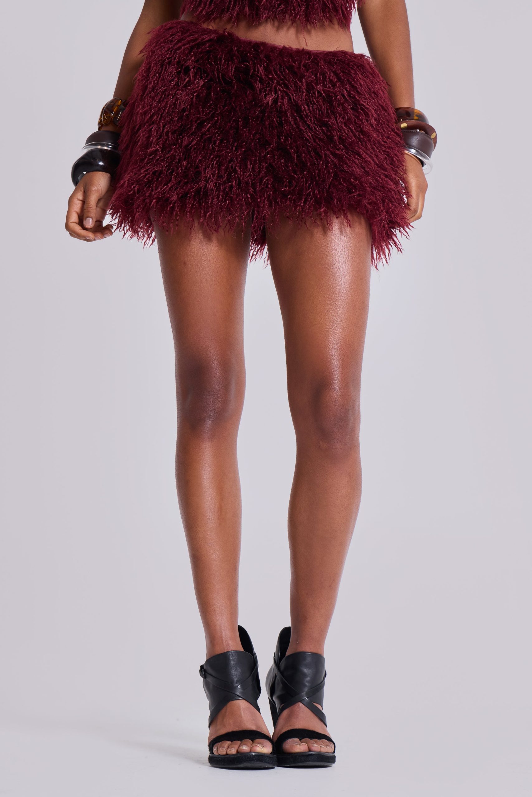 Jaded London Women’s Haka Mongolian Faux Fur Mini Skirt In Wine | Burgundy
