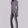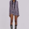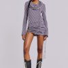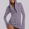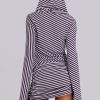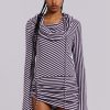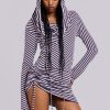 Jordyn Hooded Stripe Mini Dress. Hooded stripe dress with cowl front and ruched skirt.