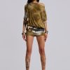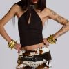 - Functional buckle and strap fastening with stud detail