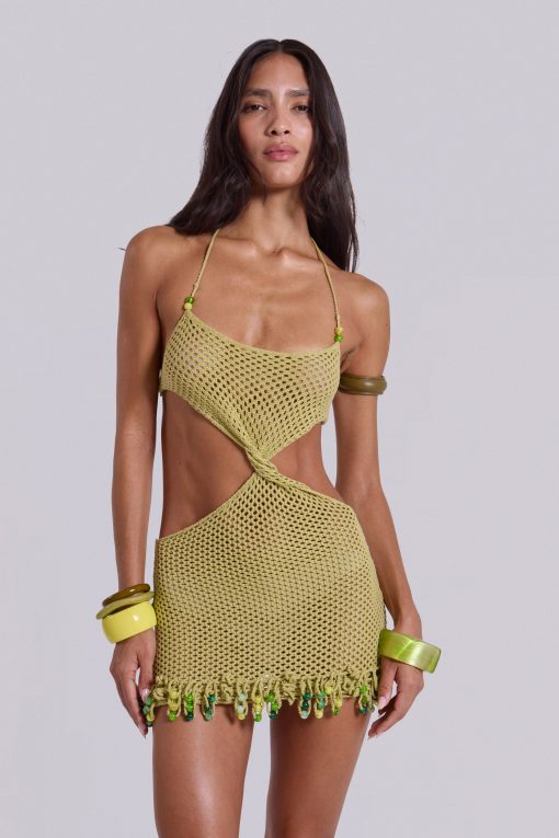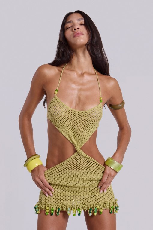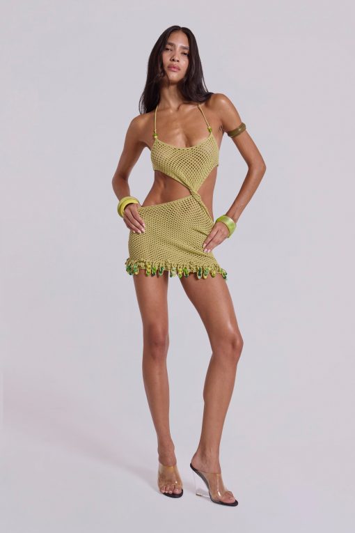 Jaded London Women’s Kuuma Beaded Crochet Mini Dress | Green