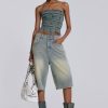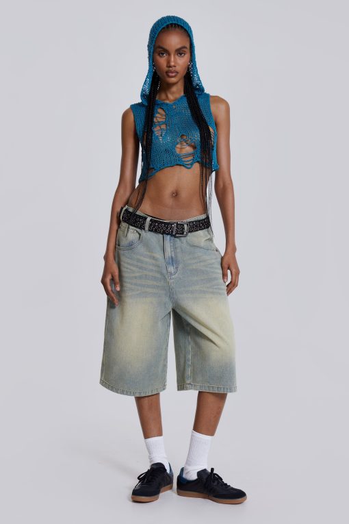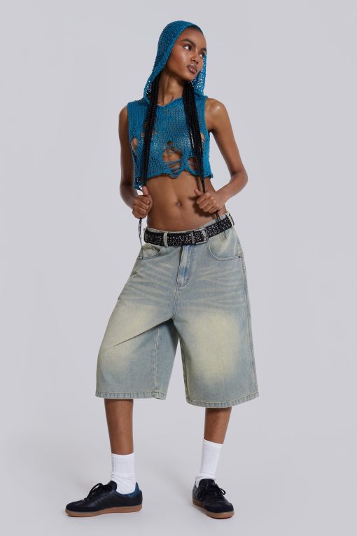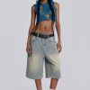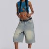 Our light wash jumbo jorts are cut from a light blue placement denim wash, these jean shorts feature three-quarter length legs and functional pockets, complete with a Colossus fit ensuring a comfortable fit.