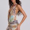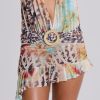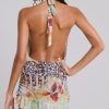 Halterneck plunge mini dress with ruffle hem & belt detail