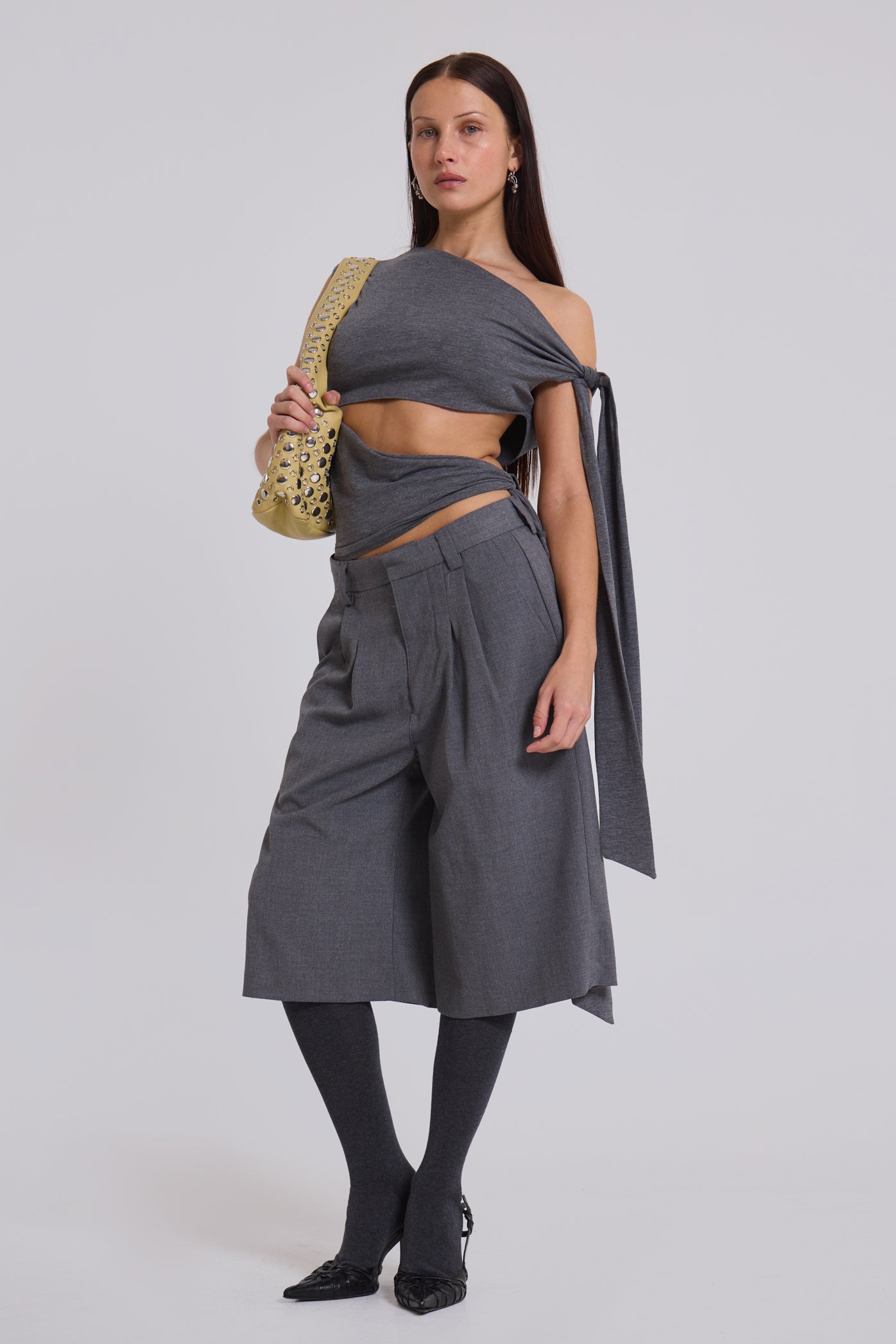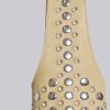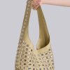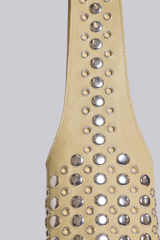Mini leather handbag in butter cream with studding and eyelets detail.