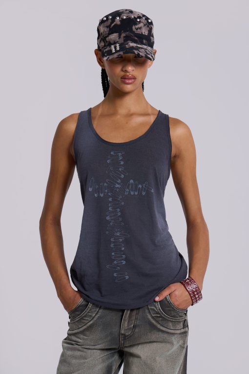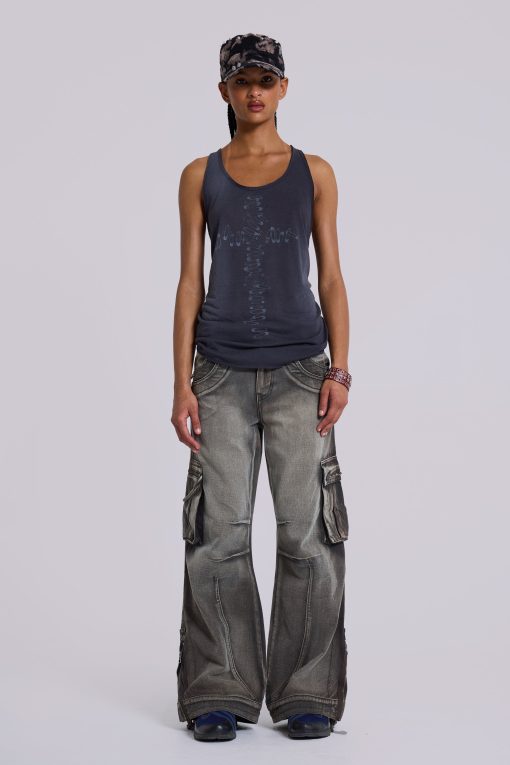 Jaded London Women’s Safety Pin Washed Black Tank | Grey