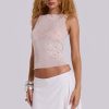 Sheer cream mesh vest top with placed embroidery and sequin floral artwork