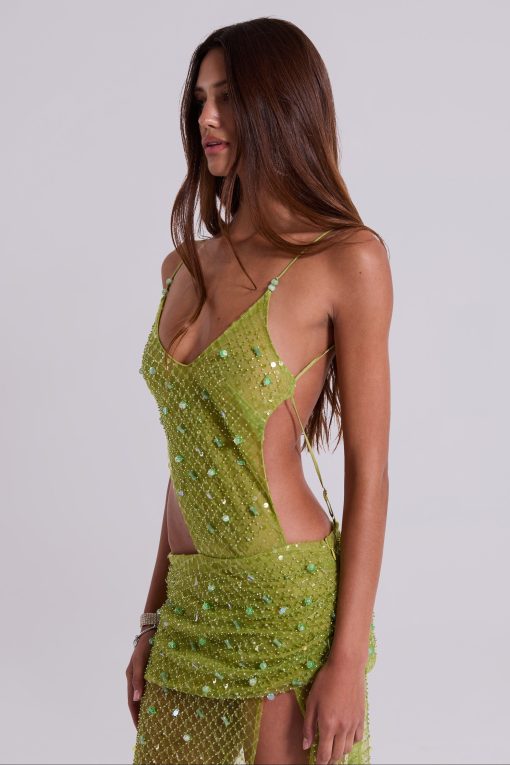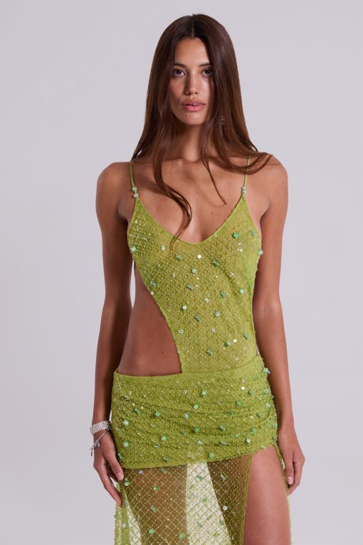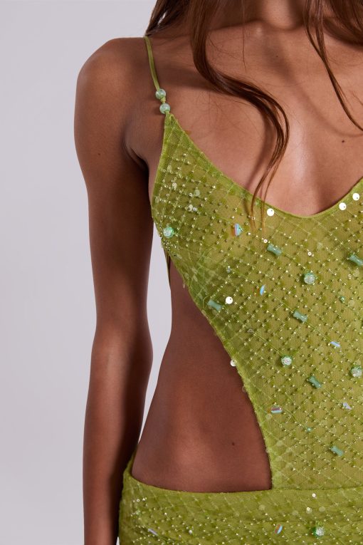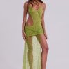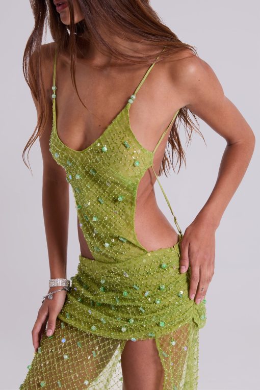 Stellar Asymmetric Hand Beaded Maxi Dress.