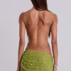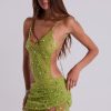 Fabric: 100% polyester Lining: 95% polyester, 5% elastane Trim 1: 100% glass beads Trim 2: 100% acrylic