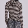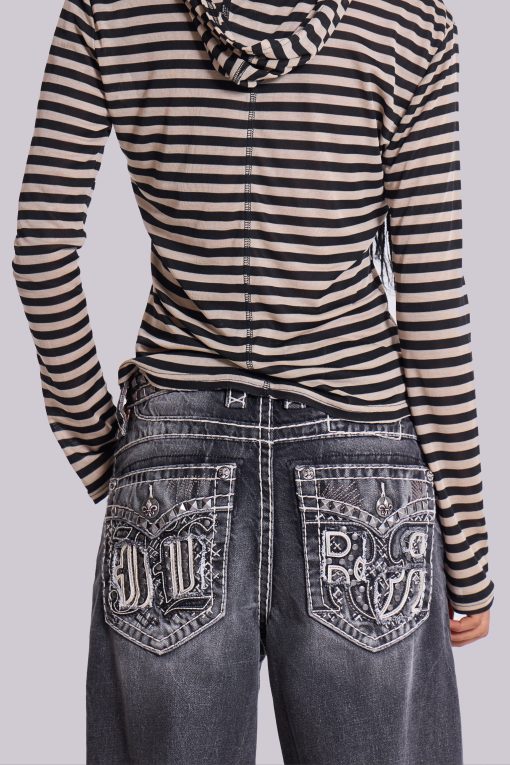 Stripe Mist Hoodie. A sheer lightweight jersey hooded top with beige and black stripe.