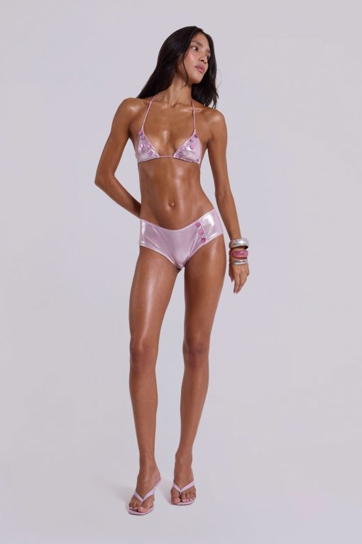 Jaded London Women’s Swim Azalea Metallic Button Mini Short Bikini Bottoms | Pink