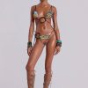 Fabric: 77% polyester, 23% elastane. Lining: 90% polyester, 10% elastane. Trims 1: 100% resin Trim 2: 100% wood