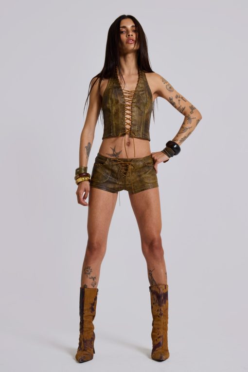 - Whip stitch faux leather cord & eyelet detail on pockets