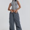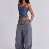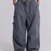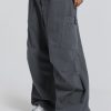 DescriptionDesigned with an oversized fit and a combination of metal eyelets, zip fly and adjustable cotton drawcord, our Vintage Grey Parachute Cargo Pants deliver refined luxury and ultimate comfort. Details such as a pleated knee and inside leg darts ensure a perfect fit, while a six-pocket styling and a unique airpod pocket provide functional convenience. Elevate any look with this timeless and classic silhouette.