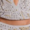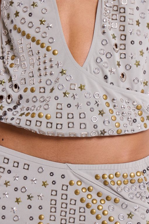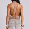 Jaded London Women’s Xtal Studded Backless Plunge Top | Grey